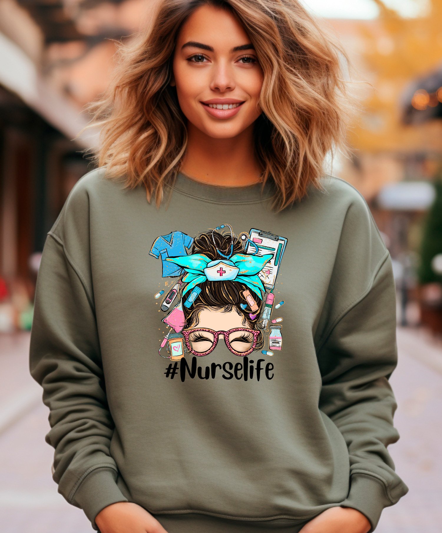 NURSE LIFE IN TEAL- SWEATSHIRT